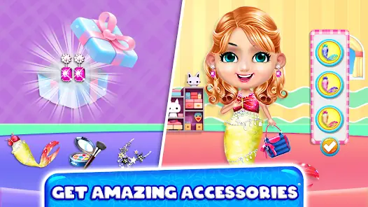 Embark on an interactive journey through sparkling landscapes and discover a mesmerizing world of mermaids and fashion. The fashion game features various puzzles and challenges that promote learning through enjoyable activities for young children, while also engaging older players such as teenage girls and mothers of babies. Incorporating the charm of dress-up games, unleash your creativity by styling dolls in the most fashionable outfits imaginable.